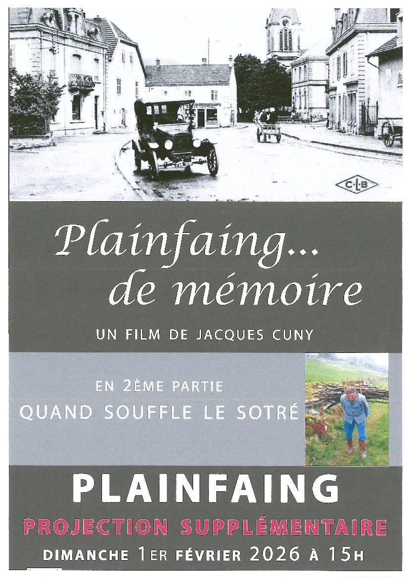 Nouvelle projection du film de Jacques Cuny « Plainfaing de mémoire » le dimanche 1er février à 15h00 [...]
